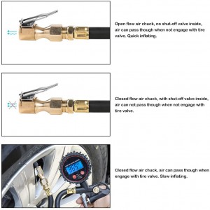 keeps the chuck attached to the valve stem during inflation Maintain correct tire pressure, reduce tire wear and extend tire life.